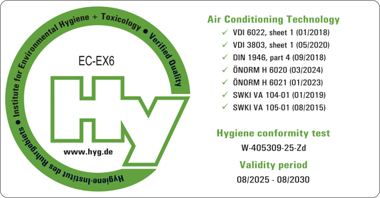 VDI 6022 is one of the most comprehensive European standards for ensuring hygienic air quality in HVAC systems. This is approved by VDI – The Association of German Engineers. It sets strict requirements for the design, materials, cleanability and microbiological safety of ventilation components used in sensitive environments such as hospitals, schools and public buildings.
