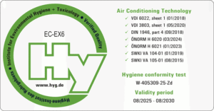 Siekiant užtikrinti aukščiausią higienos lygį, šio įrenginio priešpriešinių srautų šilumokaitis yra sertifikuotas pagal Europos standartą VDI 6022, todėl tai yra saugus ir patikimas pasirinkimas bet kokiai aplinkai, įskaitant ir patalpas su jautriais oro kokybės reikalavimais.